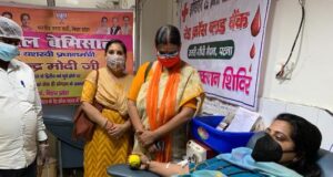 “7 साल बेमिसाल” कार्यक्रम के तहत भाजपा महिला मोर्चा द्वारा रक्तदान