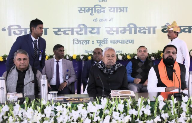 संवाददाता।पटना। मुख्यमंत्री नीतीश कुमार ने पूर्वी चम्पारण जिले के मोतिहारी स्थित गांधी मैदान में समृद्धि यात्रा के दौरान जिले से संबंधित विकासात्मक एवं कल्याणकारी योजनाओं की समीक्षा बैठक की।